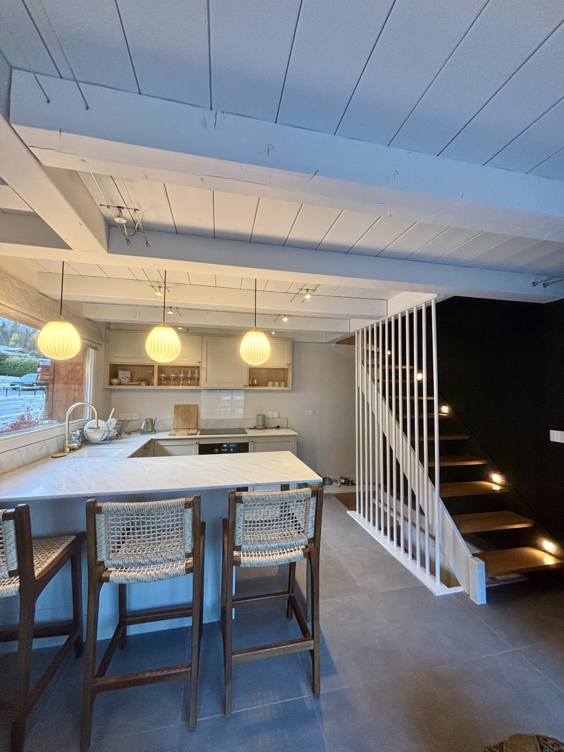 Notre équipe a récemment achevé la rénovation complète d’un chalet de deux chambres dans le calme quartier des Gaillands, près de Chamonix. Le projet avait un double objectif : résoudre les problèmes d’humidité dans le sous-sol et moderniser le chalet tout en améliorant son confort et son efficacité énergétique.